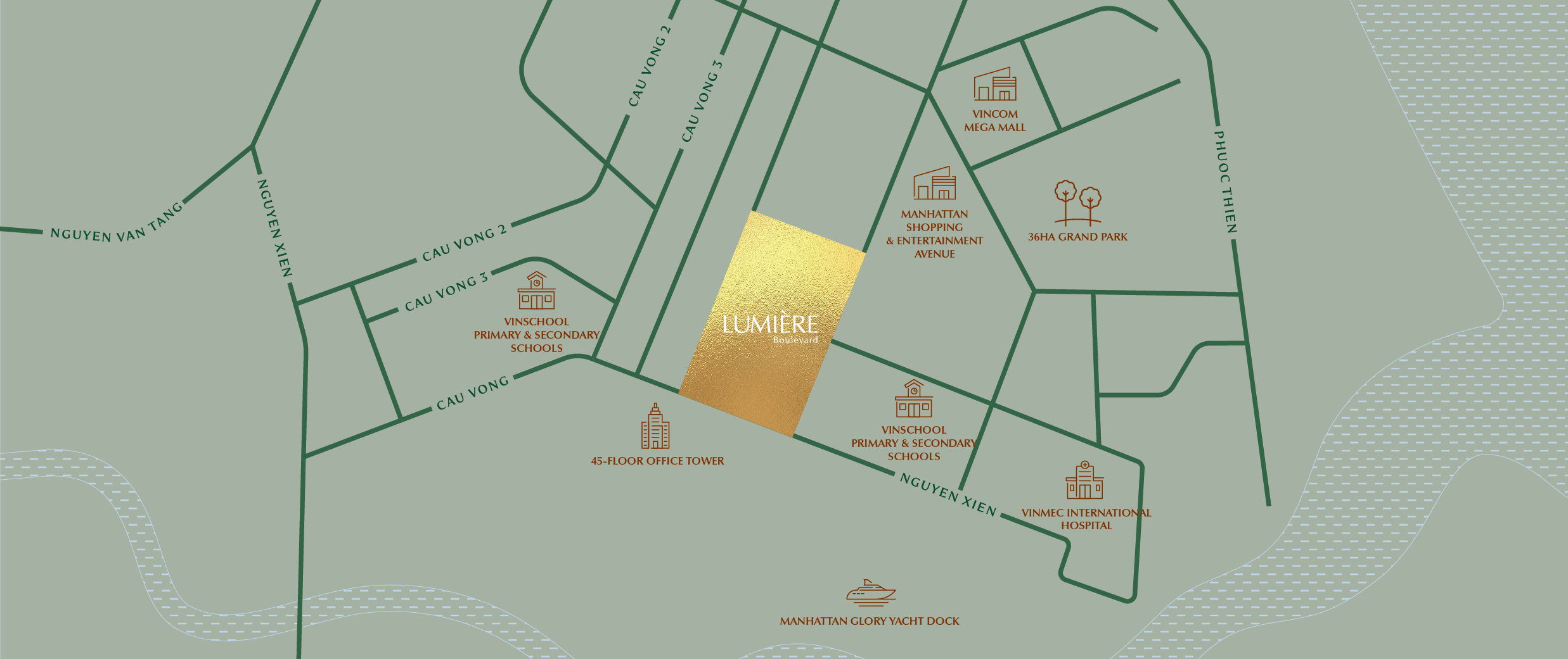 LUMIÈRE Boulevard is just minutes away from international schools, shopping malls, hospitals, and hundreds of amenities within Grand Park.