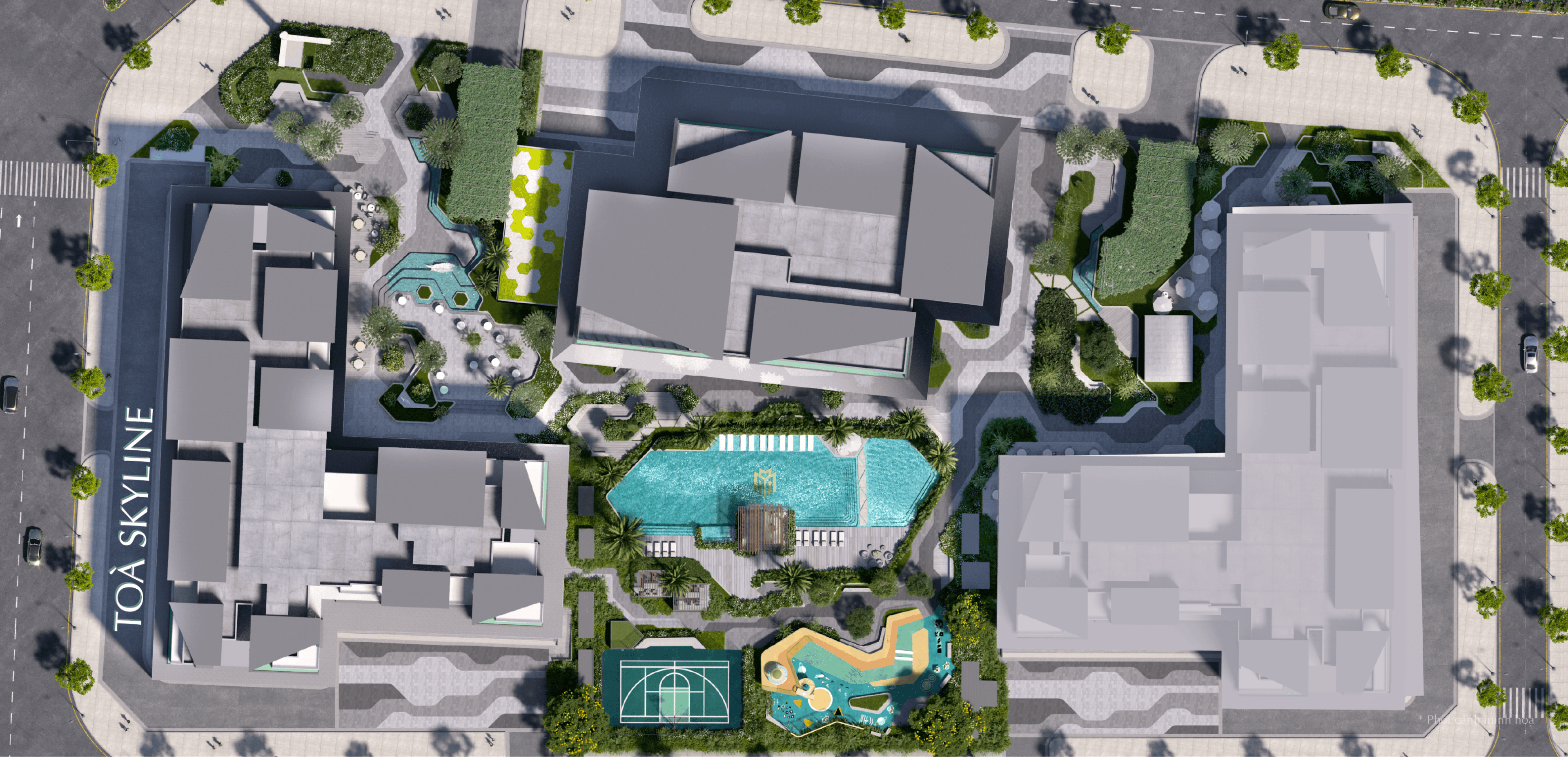 Dự án được quy hoạch với hệ thống tiện ích nội khu đồng bộ, đáp ứng trọn vẹn nhu cầu sống, nghỉ ngơi và giải trí của cư dân. Từ công viên cây xanh, khu thể thao đa năng, bể bơi, sân chơi trẻ em đến trung tâm thương mại, trường học, phòng gym – tất cả đều được bố trí hợp lý, dễ tiếp cận, mang đến cuộc sống tiện nghi và cân bằng mỗi ngày.