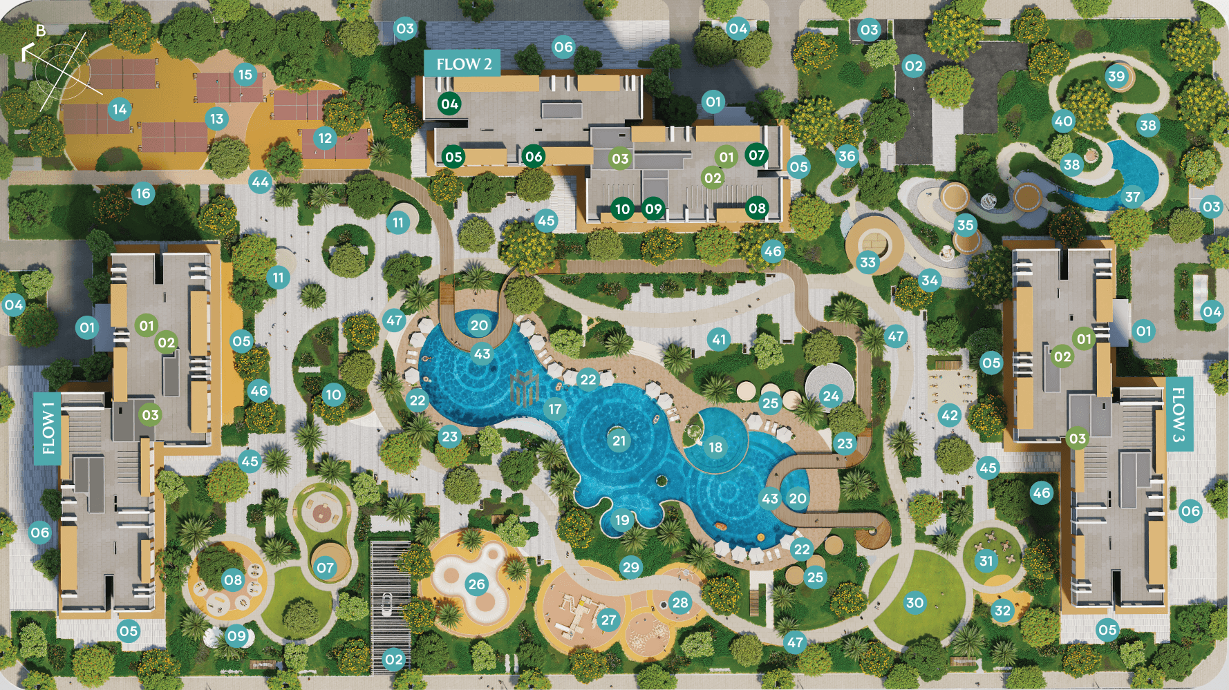 Với hệ thống hơn 60 tiện ích và cảnh quan được chọn lọc tỉ mỉ, một "dòng chảy thuần khiết" được hình thành tại The Flow, nơi mỗi tiện ích bồi đắp sức khỏe, gắn kết tình thân hay những khoảng lặng dành riêng đều hòa quyện vào mảng xanh thiên nhiên rộng mở, mang tới những nốt bình yên dung dưỡng giấc mơ vươn tầm thời đại mới.